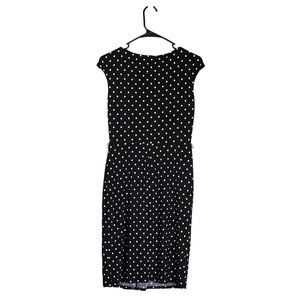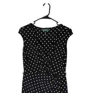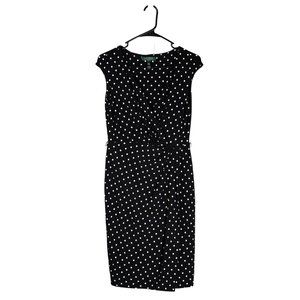 Ralph Lauren Women's Dress Black White Polka Dot Stretch V-Neck Faux Wrap Size 4
