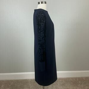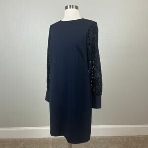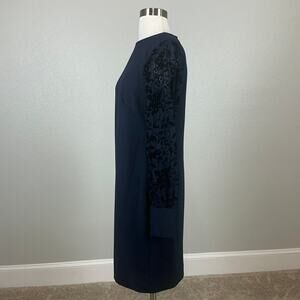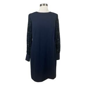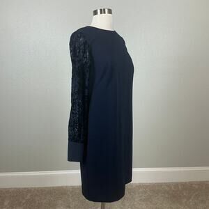 Ralph Lauren Women's Dress Size 4 Blue Crepe and Lace Long Sleeve Sheath