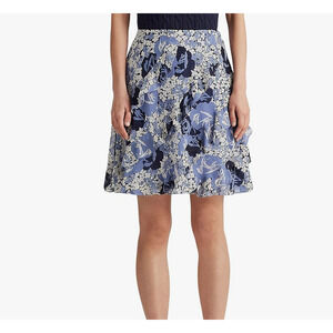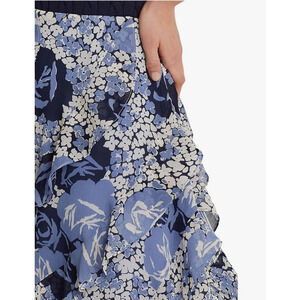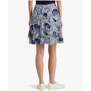Ralph Lauren Women's Floral Ruffle-Trim Georgette Skirt Blue/Cream/Navy Size 8