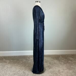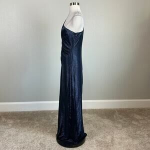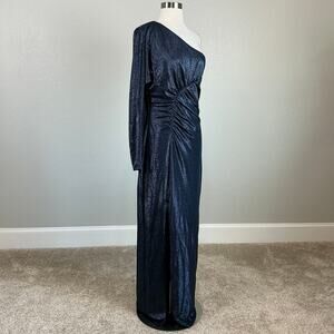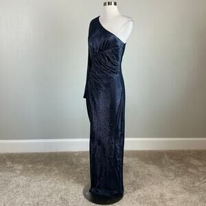 Ralph Lauren Women's Formal Dress Size 10 Blue Metallic One Shoulder Long Gown