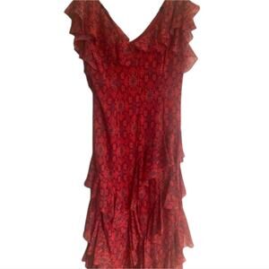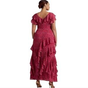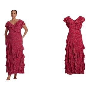Ralph Lauren Women's Geo-Print Ruffle-Trim Georgette Maxi Gown Dress Plus 18 New