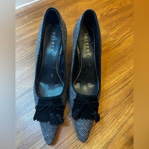 Ralph Lauren Womens Gray & Black Tassel Shoes Heels Pump US 8