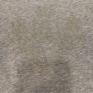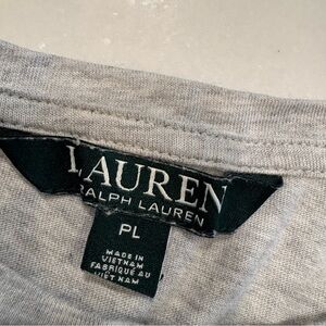 Excellent condition. Unique. Women’s Lauren Ralph Lauren gray tee shirt with silver studded crown laurel leaves crest logo. Short sleeves. Size Large Petite. See photos for measurements.