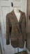 Chic houndstooth blazer with double-breasted design. Features black, brown, green and red pattern. Perfect for a sophisticated or dress it casual.