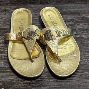 Ralph Lauren Women's Kalana Gold Flip Flop Dress Slip On Sandal Size 8B. Pre owned -gently used.