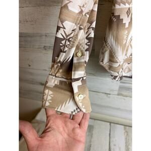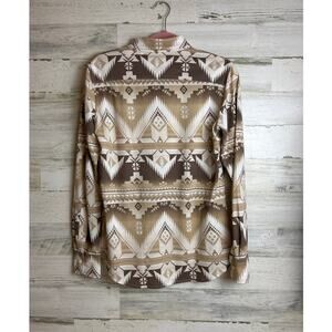 Ralph Lauren Women's L Button Up Brown Knit Oxford Country boho aztec shirt top