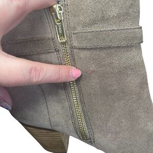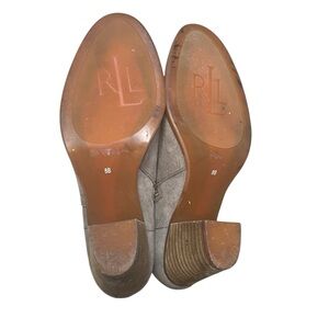 Ralph Lauren Women’s Macie Gray Suede Leather Bootie Boots 8B Buckle Strap Heel
