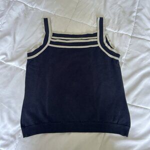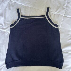 This Ralph Lauren Women's Medium Petite Blue Silk Sleeveless Tank Top Sweater.