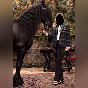 Ralph Lauren Women’s Navy Green Plaid Wool-Blend Structured Crest Blazer 20W