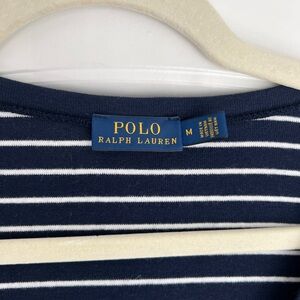 Ralph Lauren Women's Navy and White Striped Long Sleeve Tee