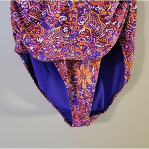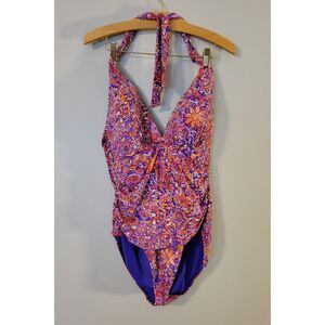 Ralph Lauren Womens One Piece Orange Purple Halter Swimsuit Size 14