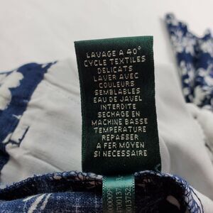 Ralph Lauren Womens Pants Large Navy Blue White Floral Linen Cropped Capri