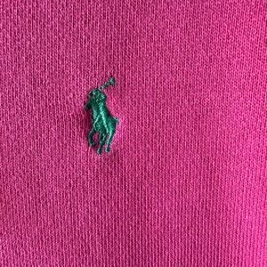 Vintage Ralph Lauren pink hoodie with aqua logo. Excellent condition.