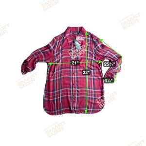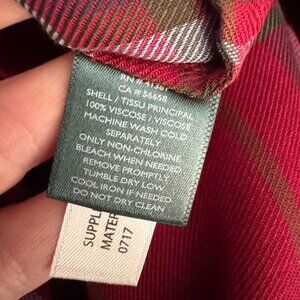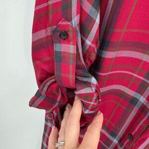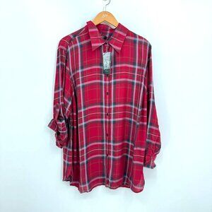 Ralph Lauren Womens Plaid Button Up Shirt 1X Roll Tab Sleeves Lightweight Red