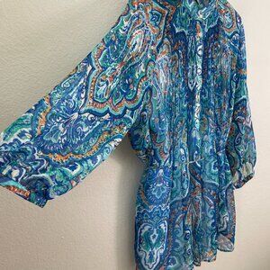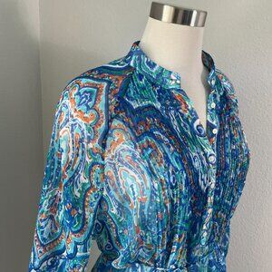 Ralph Lauren Womens Plus 1X Paisley Button Front Tunic Top Blouse Lined Shirt