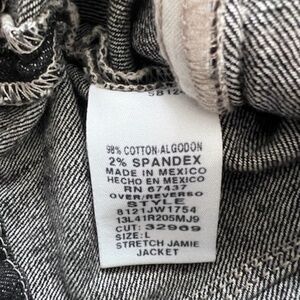 The product is a Ralph Lauren women's polo jeans jacket in a size L, with a basic jacket style in a distressed black color. Made of cotton, this regular-sized jacket features a cotton lining and is designed specifically for women. Perfect for a casual, everyday look, this jacket combines comfort and style with its classic Ralph Lauren brand.