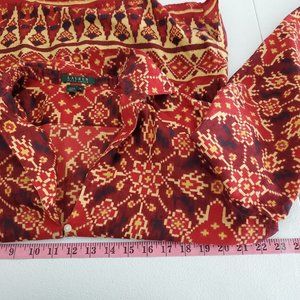 Ralph Lauren Womens Red Tan Southwest Popover Blouse Size XL Long Sleeve Flowy