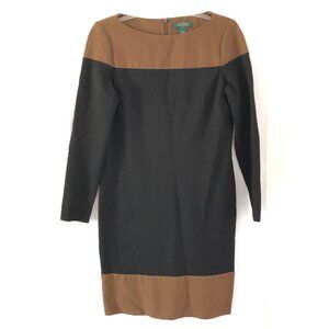 Ralph Lauren Women’s Sheath Dress Size 8 Black Brown Color block Long Sleeve