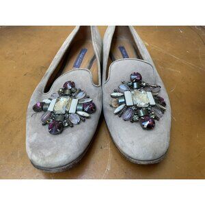 Ralph Lauren Women's Suede Leather Bejeweled Purple Label Flats Sz 37.5B (F136)