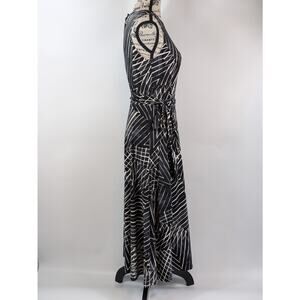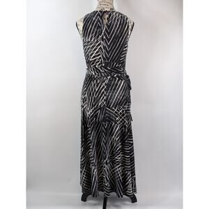 Title: Ralph Lauren Women's Sz 4 Dress Midi Tie Belt Black Slate Cream Print Below Knee Slinky