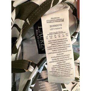 Ralph Lauren Womens Tropic Monotone High-Neck Swimsuit Halter Olive/White Sz 14