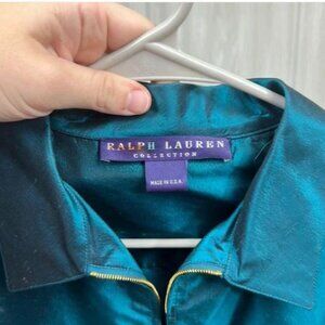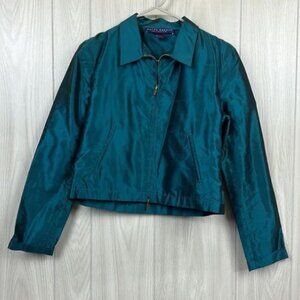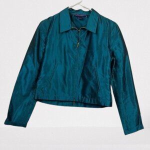 Ralph Lauren Women's Vintage Metallic Zip-Up Motto Blue Jacket. Size 8.