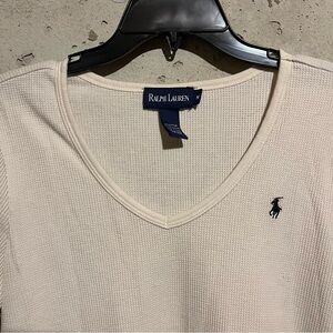 Ralph Lauren Womens Waffle-knit Basic T-Shirt, Cream Long Sleeve Ruffle Hem Sz M