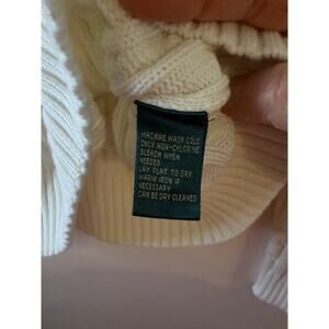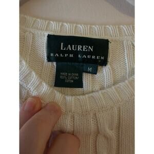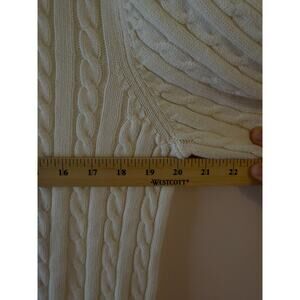 Ralph Lauren Womens White Cable Knit Preppy Crew Sweater Pink Embroidery Medium