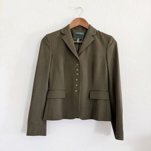 Ralph Lauren Women’s Logo Buttons Olive Green Wool Stretch Fitted Blazer Jacket