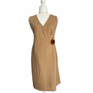 Ralph Lauren Wool Sleeveless Cashmere Buckle Wrap Dress