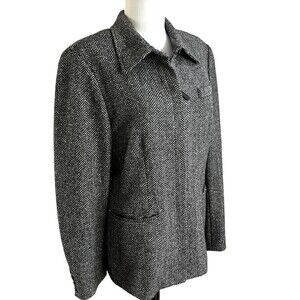 Lauren by Ralph Lauren Wool Tweed Herringbone Equestrian Zip Front Blazer Jacket Size 12