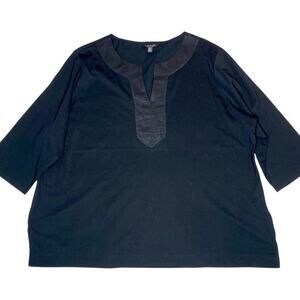 Ralph Lauren Woven Top 3X Black Cotton Classic Lagom Lagenlook Luxury Scandi