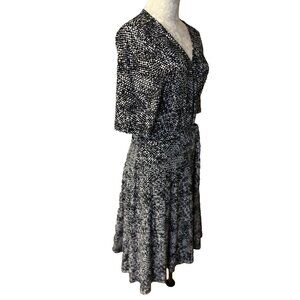 This pretty dress is from Lauren (Ralph Lauren's green label) in a misses size 14. Black and ivory in color.