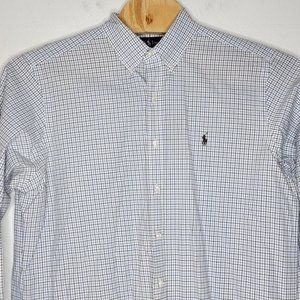 Ralph Lauren XL Blue / Brown Checkered Men's Button Down Long Sleeve Shirt