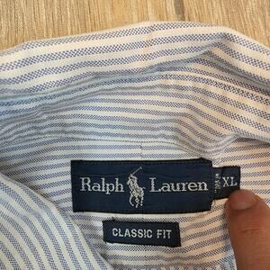 Ralph Lauren XL Classic Fit Shirt Blue White Stripe Short Sleeve Polo Pony Logo