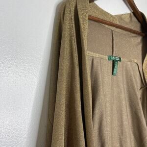 Ralph Lauren XL Gold Metallic Cardigan Drape Front Lightweight Glam Sweater