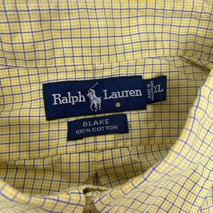 This is a pre owned Ralph Lauren XL Blake Yellow Blue Plaid Long Sleeve Button Up Cotton Shirt. This item is in great condition with minimal or no signs of use.
