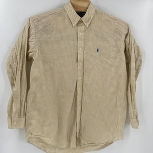 Ralph Lauren XL Yellow Blue Blake Plaid Long Sleeve Button Up 100% Cotton Shirt