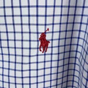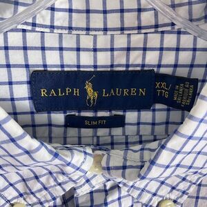 Ralph Lauren XXL Slim Fit Long Sleeve Blue White Check Tattersall Button Down