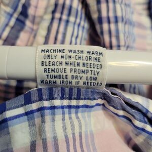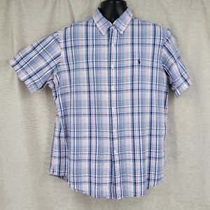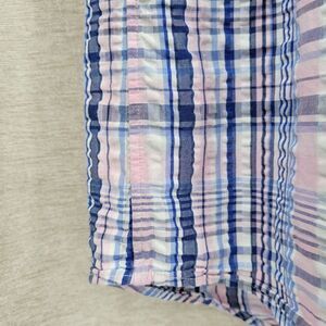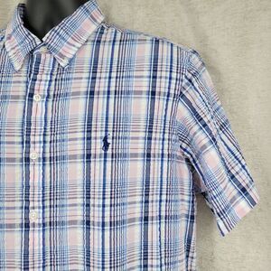 Ralph Lauren Y2K Blue Pink Plaid Cotton Seersucker Fabric Button Down Shirt