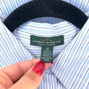 Lauren Jeans Co. Ralph Lauren Vintage Blue White Striped Button Down Shirt