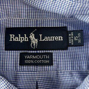 Ralph Lauren Yarmouth Button Down Shirt Mens 15 32/33 Blue White Checked