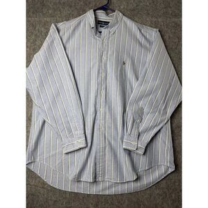 Ralph Lauren Yarmouth Dress Shirt Men's 18 Gray Striped 100% Cotton Button-Down