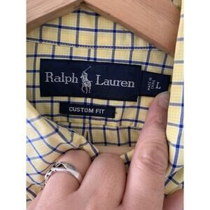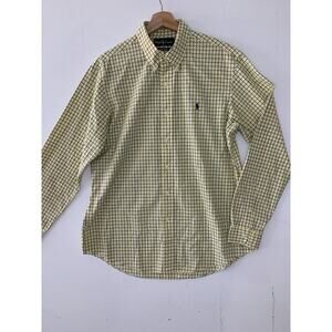 Ralph Lauren Yellow Blue Plaid Button Down Shirt Mens Sz Large Custom Fit