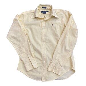 Ralph Lauren Yellow Button Down Classic Fit Women's Shirt Size 4 Logo Preppy