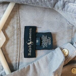 Ralph Lauren Young Mens Button Dress Shirt Blue Cotton Size 18 EUC