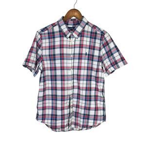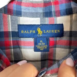 Ralph Lauren Youth Boys Red White Blue Plaid Short Sleeve Button Down Shirt