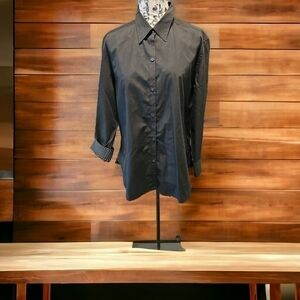 Ralph Lauren black button down LS cotton top blouse sz L N…