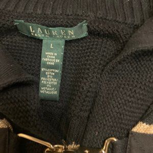 Woman's size large Ralph Lauren sweater. Striped black and gold. 97% cotton, 2% polyester, and 1% metallic.