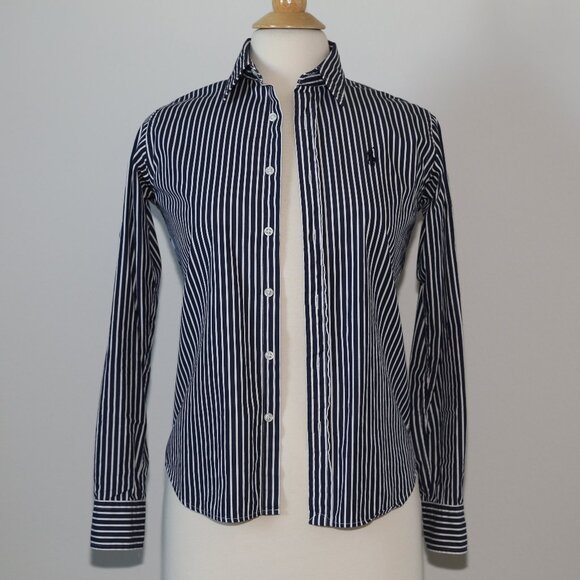 Ralph Lauren blue white striped button down cotton shirt Size 4 EUC